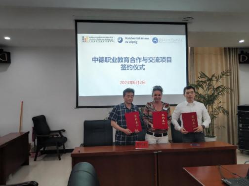 6月2日,我校与德国手工业行会(莱比锡)、中德合作与教育交流中心三方合作备忘录签约仪式在学校图书馆四楼435会议室举行。德国手工业行会培训中心主任Cornelia Hoffmann、培训部主任Joerg Winkler、中德文化与教育交流中心主席吕杉、中德文化与教育交流中心职教项目负责人崔红珊,学校校长程传红、副校长包科杰出席签约仪式。仪式由副校长包科杰主持。学校教务处、产学研工作处、人事处、宣传部、继续教育处、汽车工程(新能源汽车)学院等相关部门负责同志参加签约仪式。
