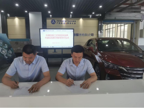 王卡明和于张宝分别代表校企双方签订共建实践教学基地协议书。签约仪式后,广汽乘用车负责人向学校转交定向培养实践教学用车1辆,车辆按照学校教学要求已进行剖解,可直观让学生掌握车辆结构及传动系统。