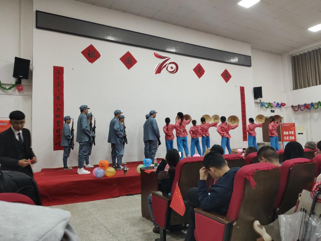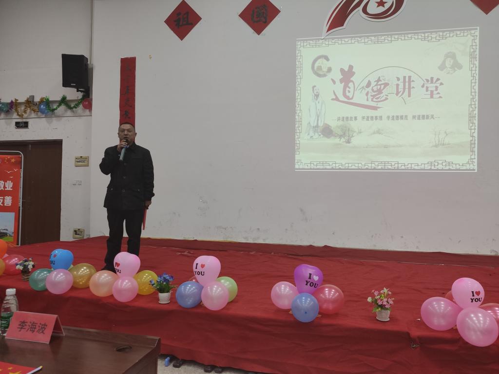 活动在庄严的《国歌》中拉开帷幕。在主持人深情并茂的引导下,讲堂上弥漫着一种热爱祖国的浓浓之情。看一段视频,片中一个个生动画面和一组组翔实数字,真实再现了我们国家多年来砥砺奋进的巨大变革,令人倍感激动和自豪,激发了全体人员的民族自豪感和使命感。诵一篇爱国文章,表达了对祖国的诚挚热爱和衷心依恋。唱一首慷慨激昂的爱国歌曲。看一部爱国小品,同学们热情的送出阵阵掌声。整个会场在温馨、和谐的氛围中进行着。随后播放的《庆祝七十周年,我们都知道》短篇,将本次道德讲堂活动推向了高潮,进一步坚定了大家的爱国信念。接着老师及同学们纷纷在“爱国”横幅上庄重地签下了自己的名字,最后,活动在全体成员的合影留念中圆满结束。