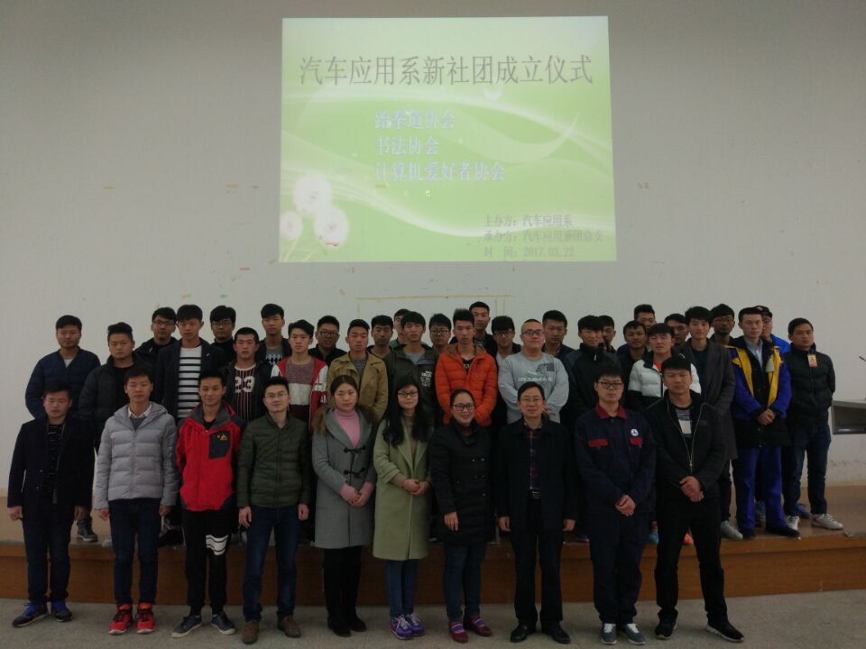 (通讯员:陈凯)为了丰富同学们的课余文化生活,促进同学们德智体美的全面发展,我院汽车应用系团总支于2017年3月22日下午四点在汽车应用系三楼阶梯教室举办了汽车应用系新社团成立仪式。汽车应用系左小勇主任,团委指导老师黄佳老师等出席本次大会。