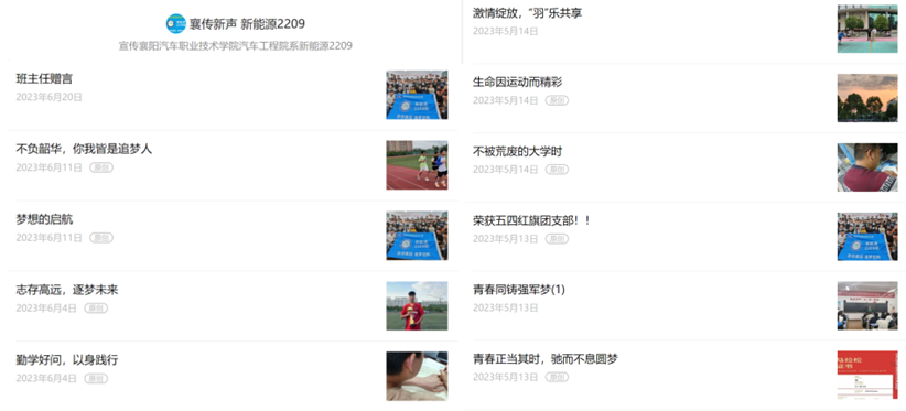 搭建“融媒体”育人平台,开通“襄传新声”班级微信公众平台,原创文章20余篇,7篇获学院网站转载,助力学生树立逐梦青春、追梦远航的远大抱负。