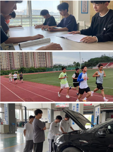 三是助力学生能力提升,打造学生加速成长的动力系统。以学生为主体,面向“强军铸梦”“深造逐梦”“匠心筑梦”三个学习小组分别开展体能训练、综合学习、技能提升学习活动,分层督学,营造了良好的学习氛围。鼓励学生积极参加职业技能提升学习,班级学生参加职业技能等级证书、机动车驾驶证训练60人次,通过以证导学,强化职业技能水平。积极参加各类技能大赛,2023年学生参赛率达到100%,获得技能大赛奖项16人次,入选省赛备赛团队2人次,通过以赛促学,提升专业技术能力。