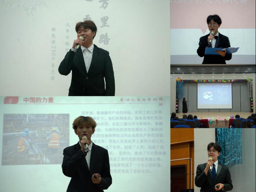 本次大赛经过前期预赛和初赛的激烈角逐与层层选拔,共有七位选手脱颖而出,挺进决赛。决赛现场,选手们充分展示了自己的才艺和主持能力。在紧张激烈的角逐中,他们用自信、热情和才华赢得了观众的热烈掌声。经过评委们的认真评审最终新能源2304班李志强获得一等奖,新能源2310班刘家维获得二等奖,新能源2309班龚心悦获得三等奖以及优秀奖若干。