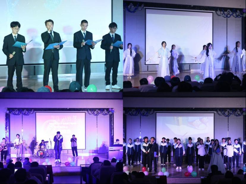 朗诵《雪》,古典舞《苏幕遮》,校园乐队背隔拉儿,大合唱《记念》这些精彩的节目无一不体现着我院学子的青春与热情。本场晚会不仅是一场艺术的盛宴,更是一场青春的狂欢。每个节目都充满了活力与创新,他们用自己的方式诠释了青春的意义。