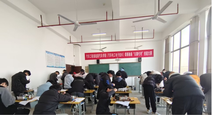 “以赛代考”是以技能大赛为载体,促进学生全面发展,以技能大赛为引领,促进教育教学改革。2024年1月11日下午汽车工程(新能源汽车技术)学院成功举办了2023-2024学年第一学期《汽车电工电子技术》课程“以赛代考”竞赛。