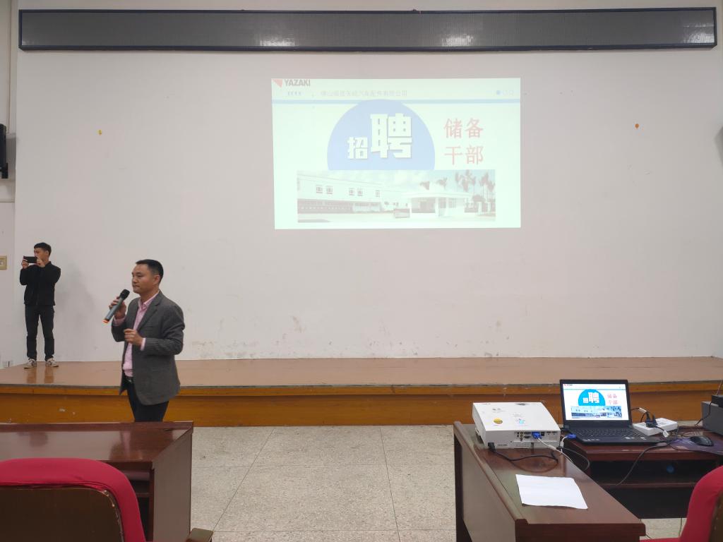 为提升学生技能,加深行业认识,更好的扩展学生就业渠道,襄阳汽车职业技术学院汽车应用学院企业校园招聘宣讲会于2019年10月16日下午在六号楼一楼阶梯教室举行。宣讲会邀请了佛山顺德矢崎汽车配件有限公司和珠海西格电力科技有限公司两家公司负责人来校,为我校在校生做企业宣讲。应用学院2020届毕业生参加了此次宣讲会。