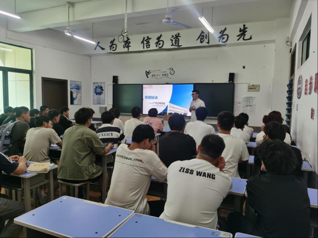 2025年6月12日下午,广汽传祺宜昌分公司在6号楼102教室举行“送课进校园”活动,2025年广汽传祺订单班32名学生及部分24级学生参加了授课,首次授课由广汽传祺宜昌分公司人事经理史兆龙、鲁伟强讲授。