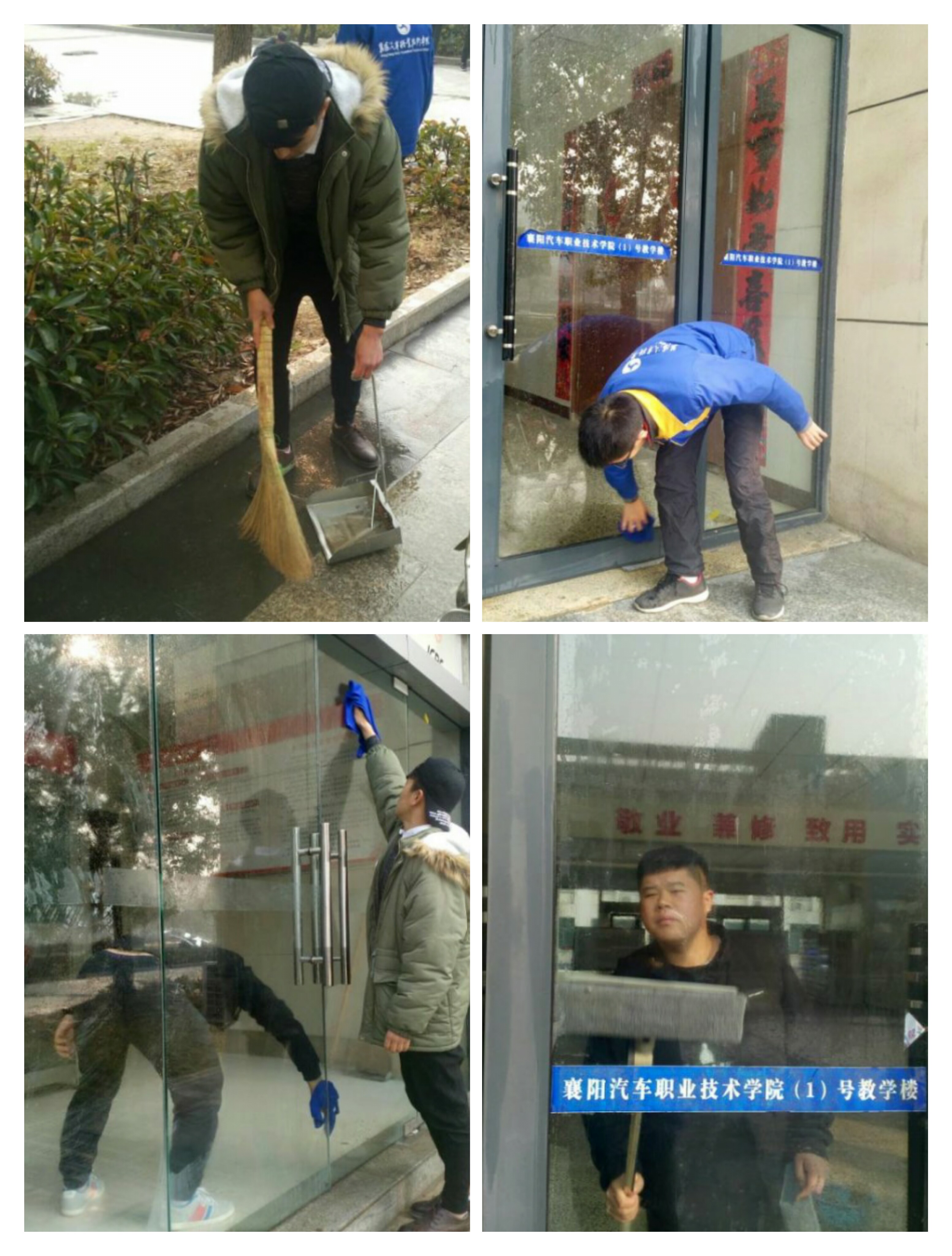 (通讯员:张启年)在2017 年 12 月 5日下午,为了进一步美化校园环境,营造良好的生活和学习环境,我校应用学院进行了校园环境清扫活动,学生会主席时刚组织大家积极配合、团结合作,在进行简单的任务分配后,学生会成员及义工成员对6号教学楼进行了地毯式的清理。