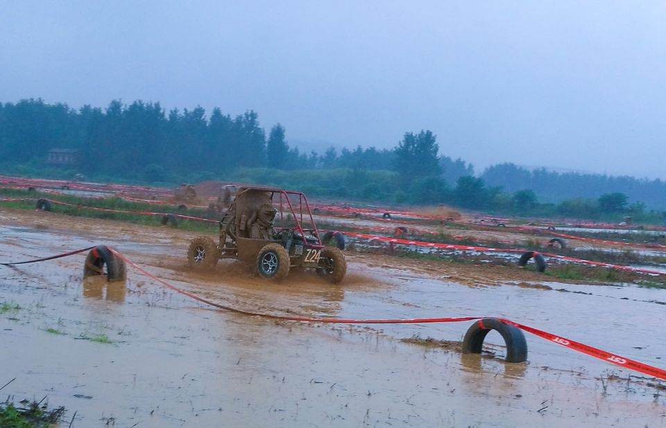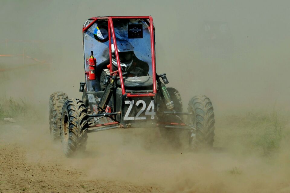 比赛中,我院学生独立设计制造的BAJA越野赛车在赛场上尽展风姿。虽然比赛途中遭遇大雨的考验,原本干燥的赛道变得松软泥泞,轮胎抓地力大大降低,比赛难度突然增加,但我院学生迎难而上、挑战极限、坚持不懈,在过半车队接连退赛的情况下仍然砥砺前行。