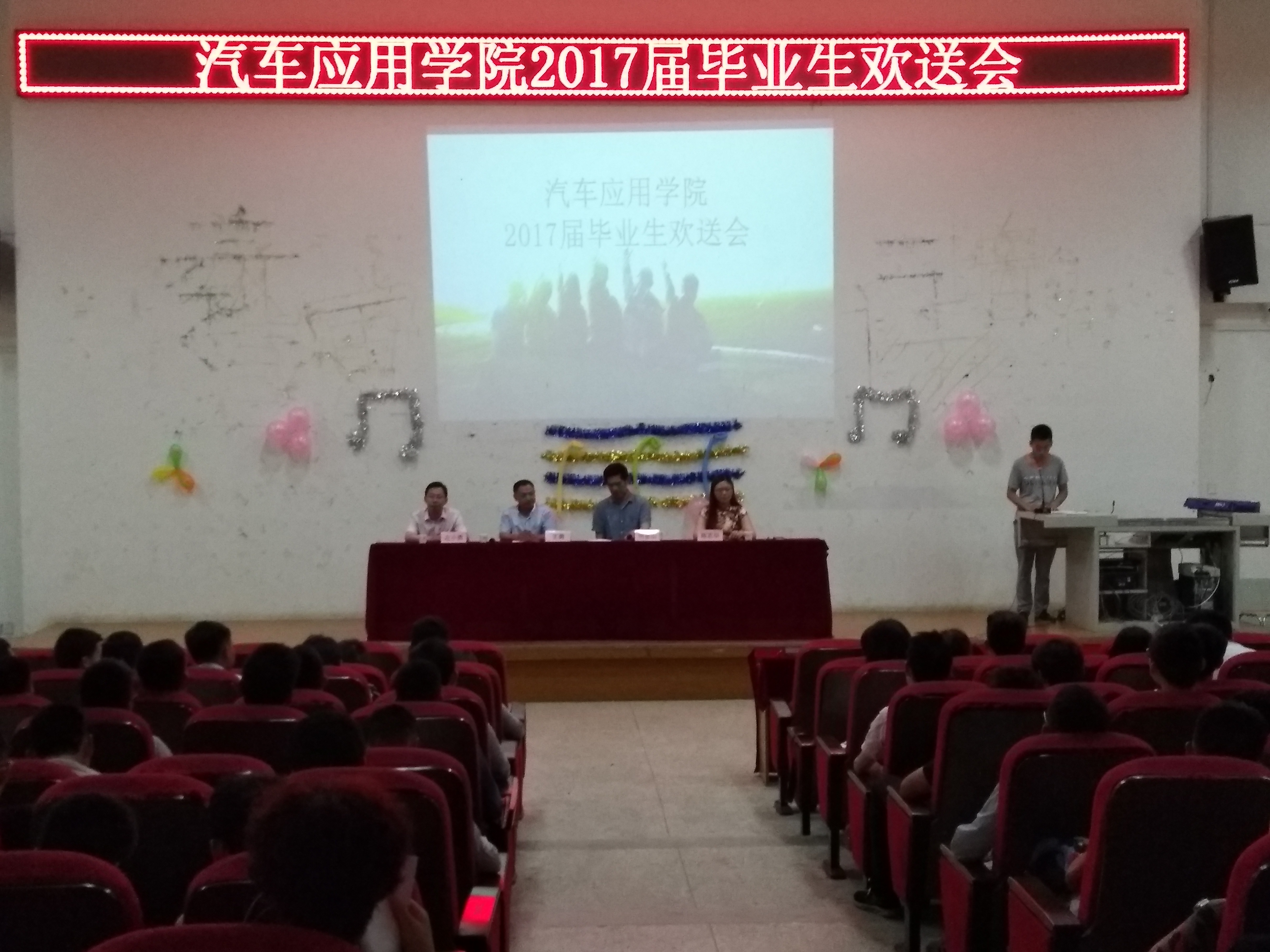当天下午,我校汽车应用学院为17届毕业班学生举办了一场隆重的“欢送会”。大会上,我院明金山书记提到,希望毕业生们在走出校园后能够在社会上更好的发展自己,同时也希望在校学生能够以他们为榜样,努力学习。在场的毕业生纷纷表示:“会牢记学校的恩情和嘱托,绝不辜负学院的期望。