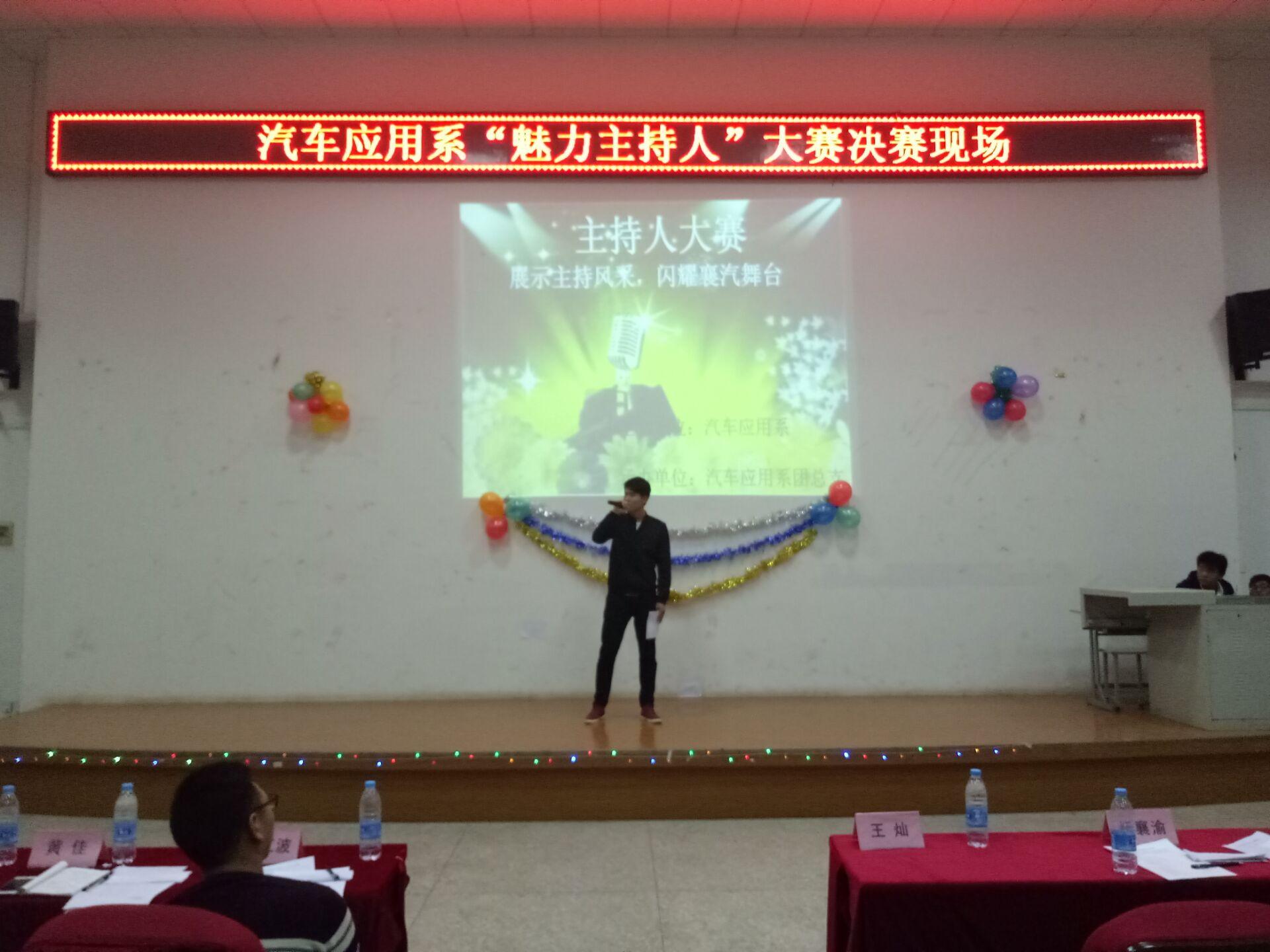 (通讯员:孙婷婷)展示主持风采,闪耀襄汽舞台。10月20日晚,我院汽车应用系团总支在6号楼一楼阶梯教室为我系学子搭建了一个名为“魅力主持人”的大赛舞台。