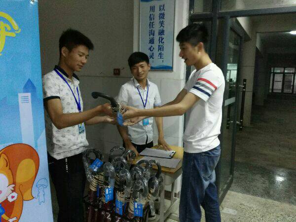 (通讯员:伍登丽)2016年5月18日,襄阳汽车职业技术学院汽车应用系团总支开展以“诚信用伞,传递爱心”为主题的校园公益活动,率先在学院人流量较为密集的6号楼一楼大门处设置爱心伞基地,为我校师生在雨天用伞提供便利。前来借伞的师生只需登记自己的姓名及联系方式,即可借走爱心伞。
