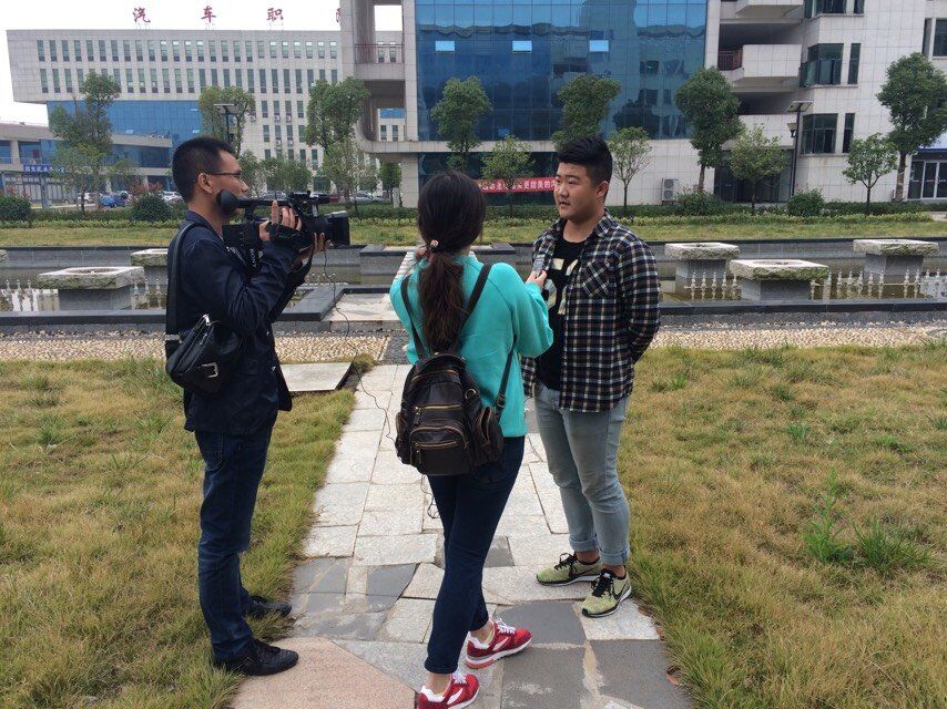 2015年10月31日晚,襄阳电视台《今日播报》栏目,对我校汽车应用系梦想小组“襄汽四溢”微信公众号进行了报道。其中,采访了汽车应用系王勇书记、秦显峰主任和学生代表陆文豪、何凡和赵伦超,还现场手机连线采访了陆文豪同学的妈妈韩女士。现将采访过程以侧记形式记录如下,以飨观众和读者。