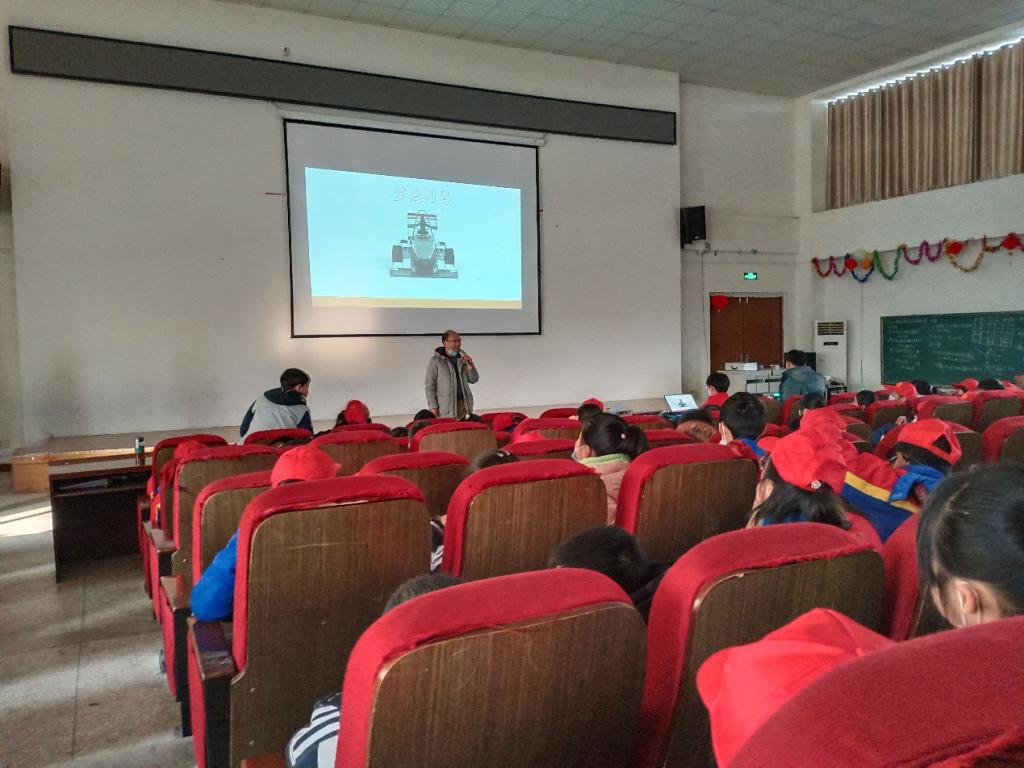 迎接仪式在汽车工程学院一楼的阶梯教室进行,首先,汽车工程学院副院长江伟和学院团委书记覃小航对小朋友们的到来表示热烈欢迎。