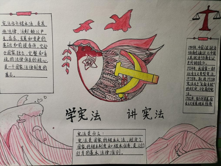 活动期间,汽车工程(新能源汽车)学院积极打造特色法治文化阵地,各个班级围绕“遵崇宪法、学习宪法、遵守宪法、维护宪法、运用宪法”开展主题活动,放低重心,把宣传宪法基本原则和精神作为重点,确保宣传的实效性。学生们积极参与此次活动,用手抄报的形式来进行普法学习。