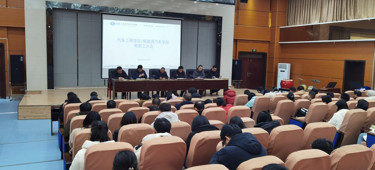 蓝图已绘就,使命在召唤,奋进正当时,我校已经入湖北省“双高”建设决胜时期。2月27日下午,汽车工程(新能源汽车)学院召开2023-2024-2学期第一次教职工大会。学校副校长包科杰、学院院长王勇、党总支书记秦显峰、副院长江伟、雷永强、周先,以及全体教师参加会议。会议由雷永强主持。