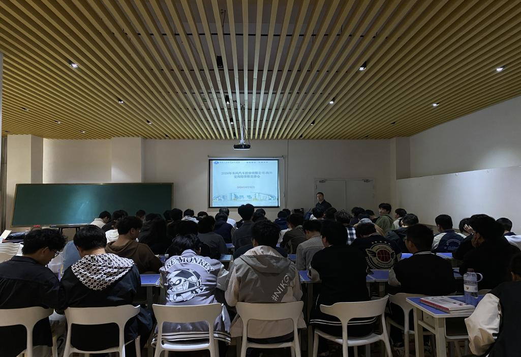 2024年4月12日上午9时,东风汽车股份有限公司在学院实训楼架空层举行了宣讲会。本次宣讲会邀请到东风汽车股份有限公司人事科长王燚,学院有近80名2025届毕业生参加了此次宣讲会,现场气氛热烈。