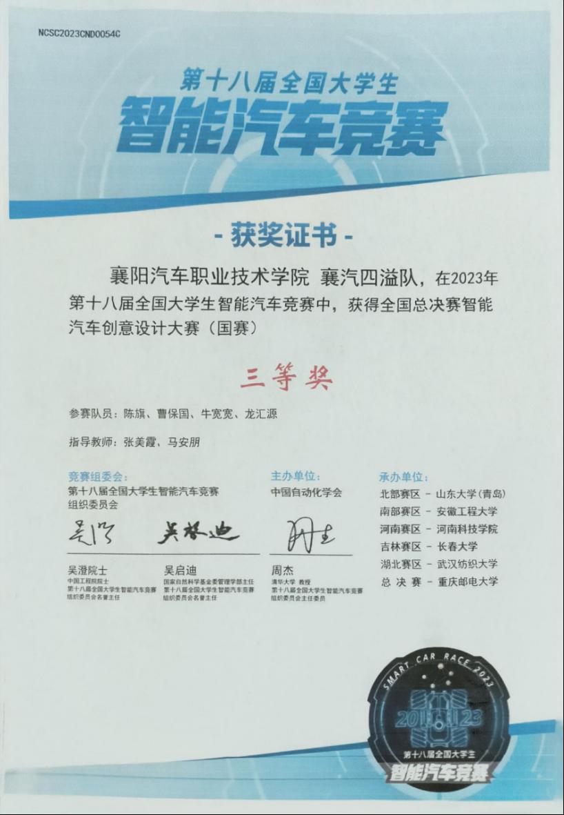 汽车工程学院汽车电子技术专业学子在2023年11月首次参加全国大学生智能车室外赛便一举获得国家级三等奖,充分彰显了学校的综合办学实力和教育教学改革成果,进一步提高了学校汽车电子技术人才培养的专业认可度。接下来,学校将继续以技能大赛为抓手,持续深化“三教”改革、“岗课赛证”综合育人,培养更多高素质技术技能人才,为职业教育、地方区域经济发展提供坚实有力的人才支撑。