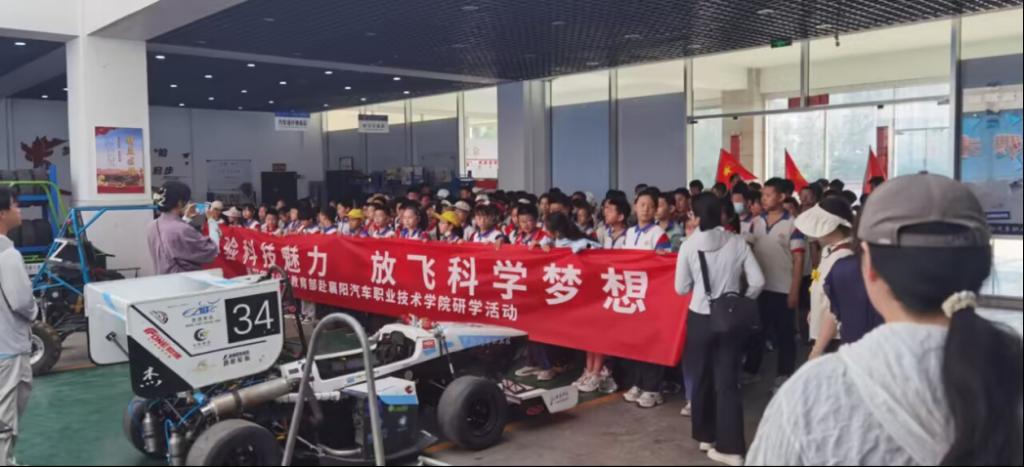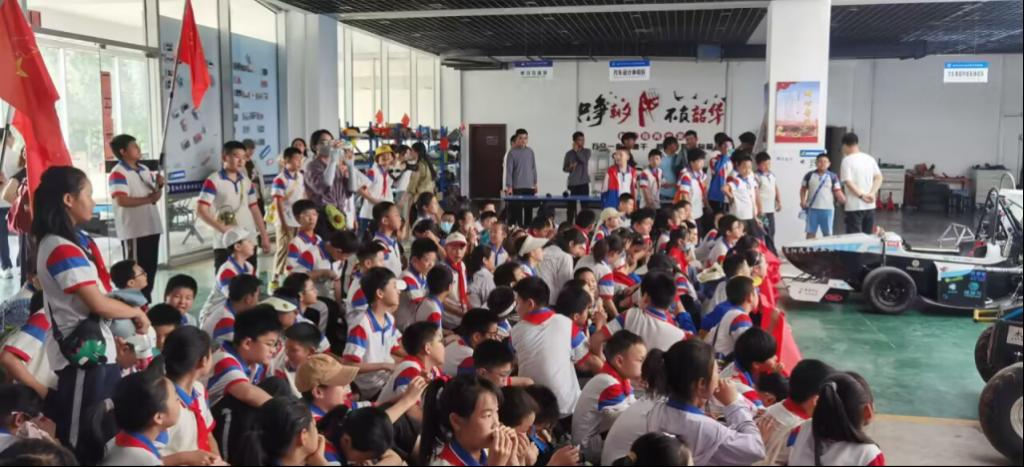 5月17日,襄阳四中义教部一百多名小学生来到汽车工程(新能源汽车)学院梦启车队和越极车队参加研学活动,与方程式和巴哈赛车近距离接触。在车队成员的讲解下,孩子们了解到了轮胎、差速器、半轴、卡钳、制动盘等知识,这些生动有趣的讲解让孩子们对赛车运动有了更深入的认识。