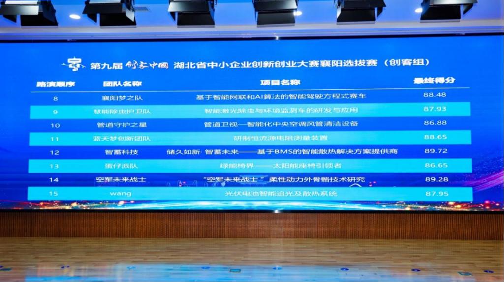 8月9日,第九届“创客中国”湖北省中小企业创新创业大赛襄阳选拔赛在东津商务大楼举行,该比赛由市经济和信息化局主办、市中小企业发展服务中心承办,主题为“围绕产业链 部署创新链 配置资金链 培育人才链”。我校汽车工程学院参赛项目“基于智能网联和AI算法的智能驾驶方程式赛车”从719个报名项目初审中脱颖而出,入围第九届“创客中国”襄阳选拔赛决赛。
