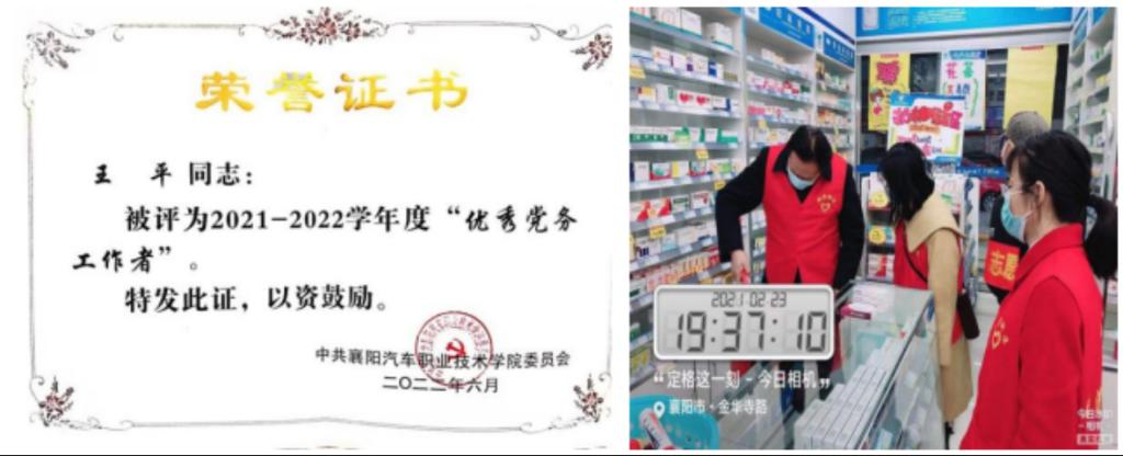 作为一名教师支部党务工作者,王平同志多次被评为“优秀共产党员”“最受学生欢迎的教师”。她坚持支部建设与学院发展相融合,主动分解学院“双高”目标任务,她所牵头的汽车检测与维修党支部被立项为湖北省样板党支部。在教学工作中,她将“为人民服务”诠释为教育好每一个青年学生;在专业建设上,她将“为人民服务”理解为指导好每一位专业教师;当疫情来临时,她又将“为人民服务”践行为保障好每一位身边群众。仅2021年寒假期间,她35次投身社区的疫情防控、“三防”入户宣传等志愿服务活动。