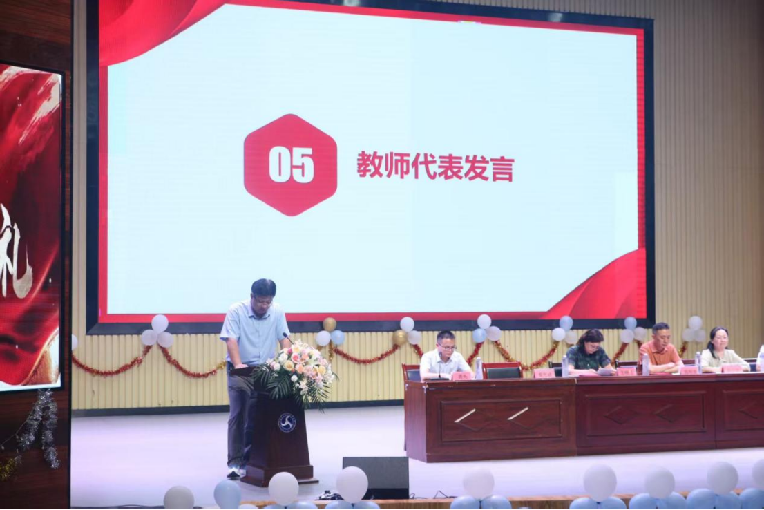 教师代表何世勇对毕业生提出殷切期望:永葆初心,在各自岗位上勤勉敬业,用实干创造不凡业绩;坚持终身学习,勇于开拓创新,持续提升专业素养;保持对生活的热爱,守护内心的纯真与热忱;勉励毕业生在新的征程上擘画精彩人生篇章。