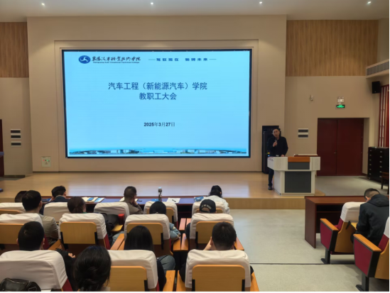 2025年3月27日,汽车工程(新能源汽车)学院在6号教学楼一楼思政报告厅成功举办了师德师风讲座,旨在进一步提升学院教师的职业道德水平和教育教学能力。本次讲座由学院院长秦显峰主讲,全体教师参与。