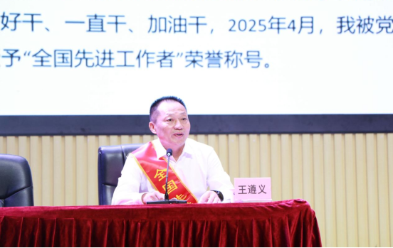 9月12日上午,襄阳汽车职业技术学院汽车技术服务学院邀请全国劳模、全国先进工作者、高庄社区党委书记王遵义在学校科学会堂开展“劳模风采 匠心筑梦”主题宣讲——“荣耀之行:一位劳模的初心与使命”。学院党总支书记柴长富,副院长周先,全体班主任辅导员及2025级新生共同参与。