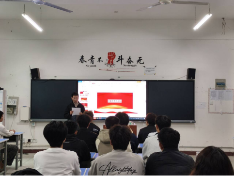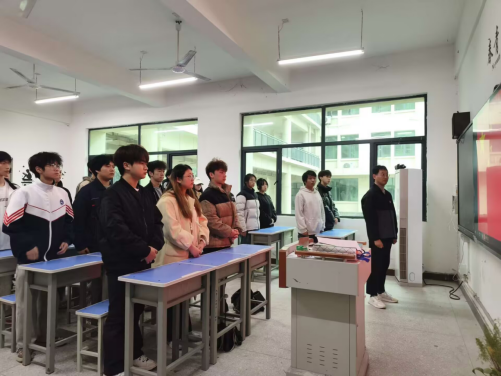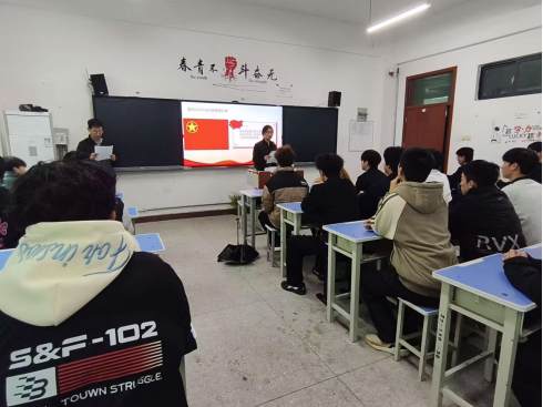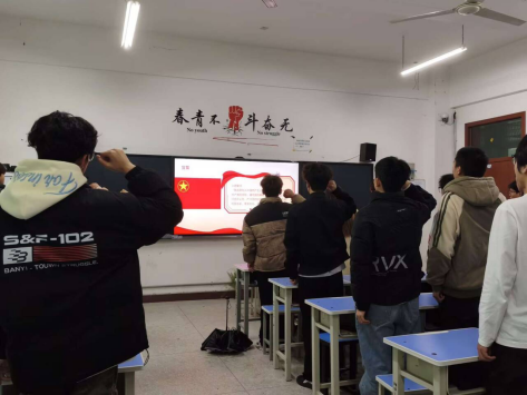 仪式在激昂雄壮的《中华人民共和国国歌》中拉开序幕。全体人员肃然起立,高唱国歌,嘹亮的歌声回荡在教室的每一个角落,传递着青年学子对党和国家的无限热爱与赤诚之心。