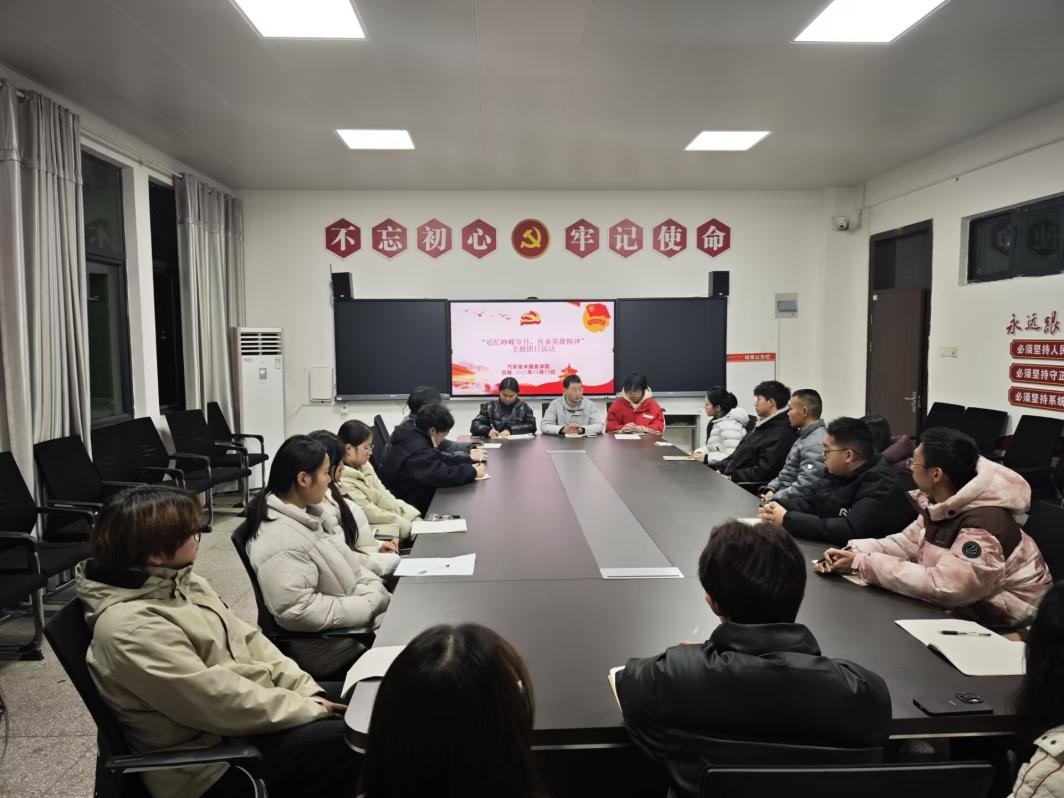 为深切缅怀革命先烈,传承红色基因,凝聚奋进力量,汽车技术服务学院于2025年12月15日,在2-211会议室组织开展了“追忆峥嵘岁月,传承英雄精神”主题团日活动。学院各班团支部书记齐聚一堂,共同参与了此次活动。