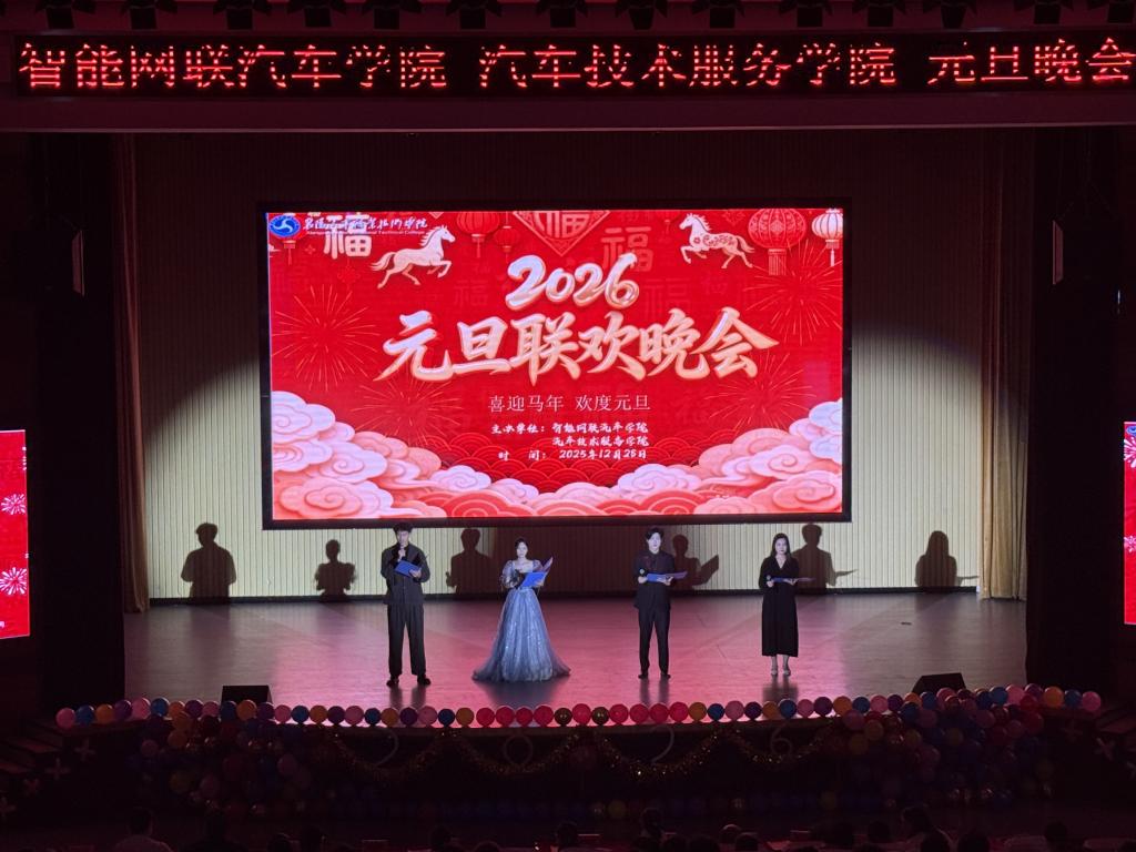 岁序更替,华章日新。12月28日晚,学校科学会堂内洋溢着欢声笑语与融融暖意。汽车技术服务学院与智能网联汽车学院联合举办的元旦晚会在此欢乐开场。校团委负责人、各二级学院书记、汽车技术服务学院院长、智能网联汽车学院院长、全体班主任辅导员与同学们齐聚一堂,共同迎接新年的到来。