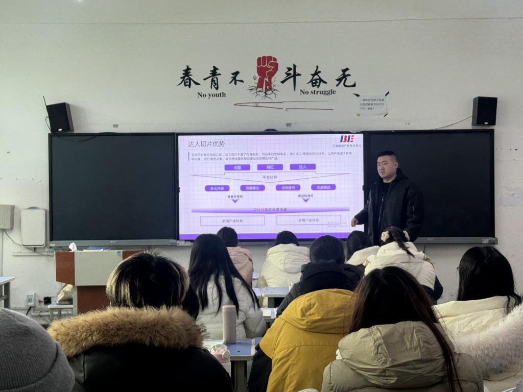 本次宣讲紧扣电商行业发展需求,聚焦短视频与直播带货核心技能。宣讲老师系统讲解视频剪辑实操方法,深入剖析抖音平台流量趋势与带货运营路径,带来满满的行业干货。同时,基地为学子提供优质的实习、兼职岗位,让学生能将课堂所学转化为实战能力,积累行业经验。
