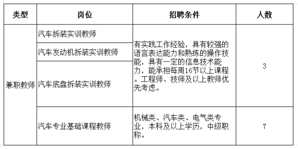 为了积极相应《国家职业教育改革实施方案》改革要求,不断优化我院师资队伍结构,现面向社会招聘有企业工作经验的兼职教师10名,具体要求如下: